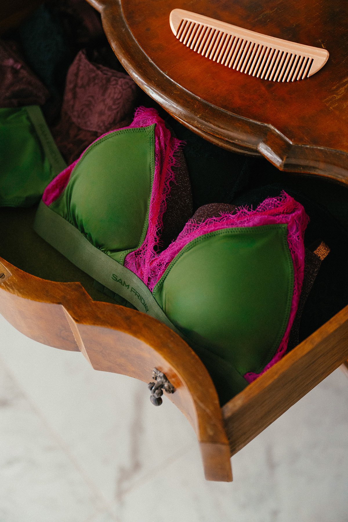 Creating imagery for website and socials for Sam Friday's new AW23 collection: lingerie & loungewear (2023)